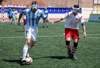 En el fútbol sala para ciegos o Fútbol 5 los equipos se componen de 8 jugadores de campo (ciegos totales), 2 porteros (videntes), un delegado de equipo y un entrenador. El reglamento es similar al de fútbol sala de videntes, aunque tiene varias adaptaciones para que sea más seguro y dinámico. Las más importantes son: el balón sonoro, las vallas laterales, el tener que decir la palabra 'VOY' a la hora de disputar el balón con un contrario, y el área más restringida a los porteros.